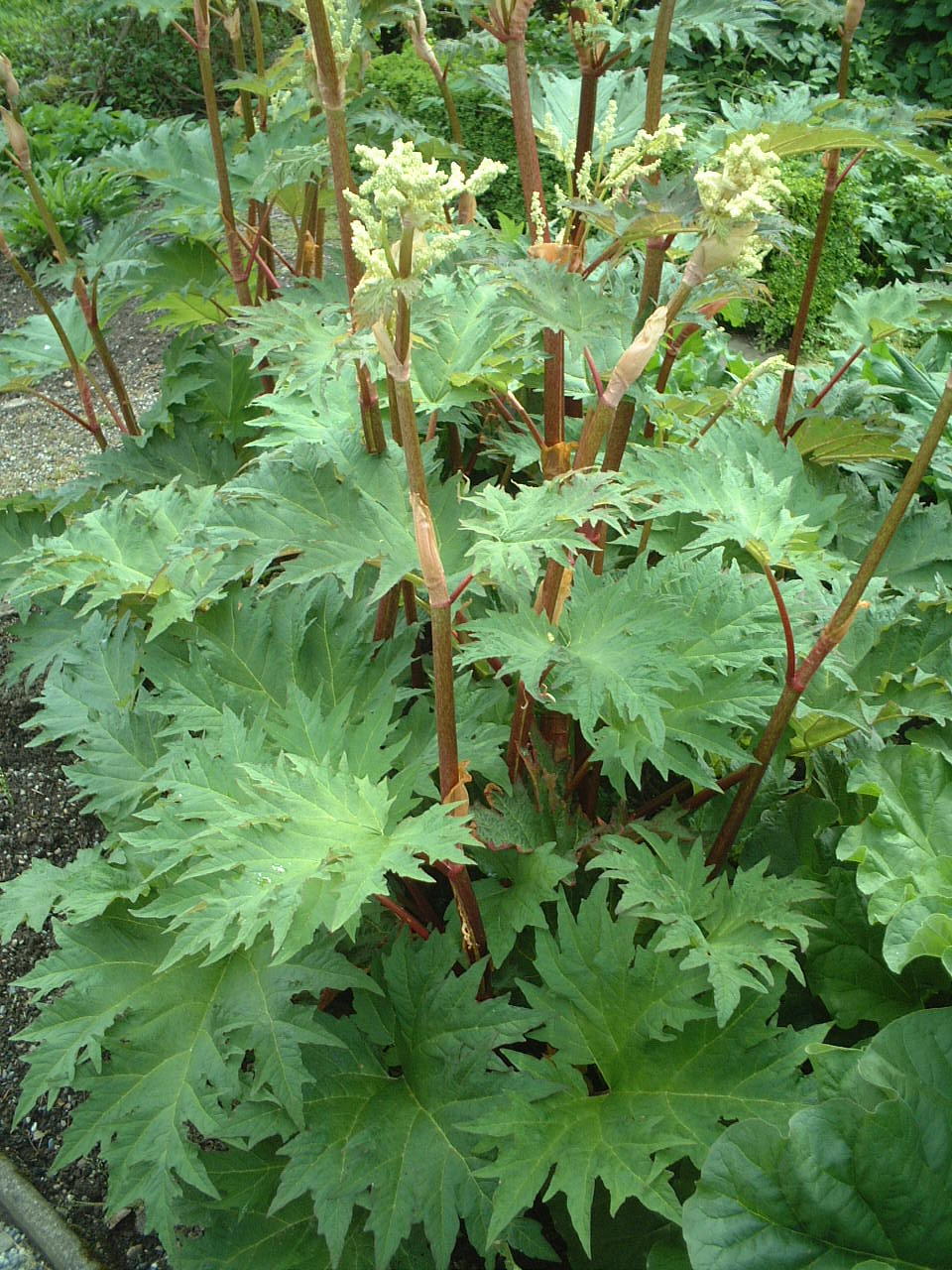 rhubarb ; common edible rhubarb ; rabarbaro comune ; ruibarbo ; rhubarbe ; rhubarbe des jardins ; Gemeiner Rhabarber ; rubarbez ; rabarber ; almindelig rabarber ; haverabarber ; tuinrabarber ; rabarba reumo ; rabarbo ; Rheum x hybridum ; Rheum rhabarbarum ; Rheum rhaponticum ; Rheum x cultorum ; hagerabarbra ; ruibarbo ; rhiwbob